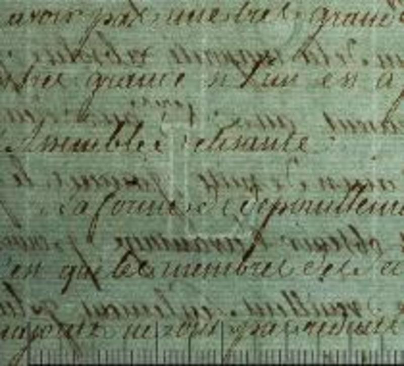 Cornet à courroie double sur écu coiffé d’une fleur-de-lis/ chiffre 4 à chevrons, la hampe se termine par un petit cercle initiale “L”